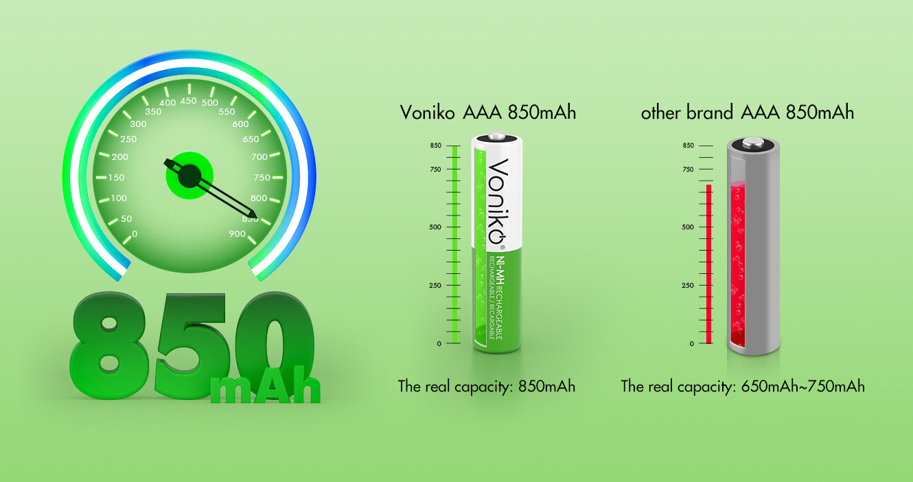 Voniko NiMH AAA Batteries - HR03 1.2V 850mAh (Rechargeable)